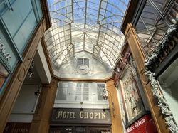 Entre autres jolis magasins, on y trouve l'hôtel Chopin. Celui-ci est présent depuis l'ouverture du passage couvert. C'est l'un des plus vieux hôtels parisiens.